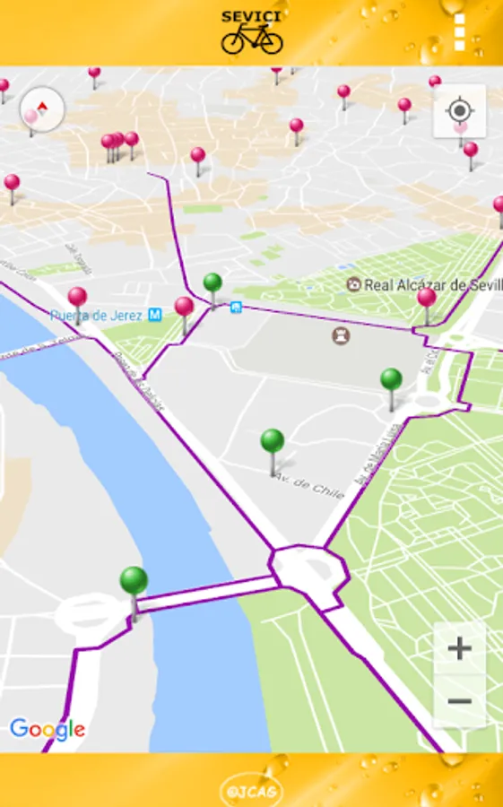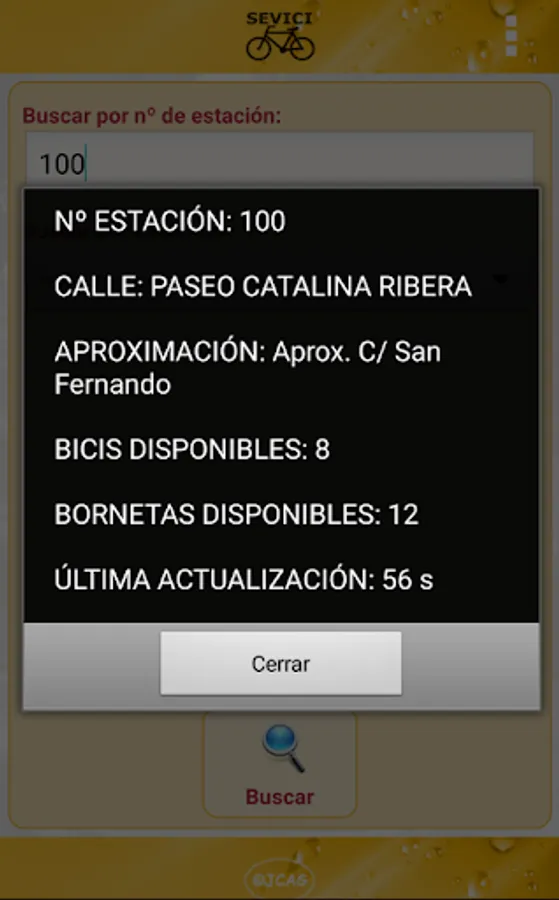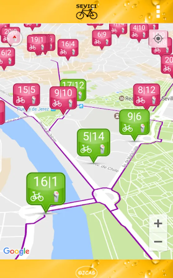 This application allows you to check in real time the bikes availables from SEVICI (public bikes from Sevilla), and check the free spaces to leave a rented bike. You can make a list of favorites stops (stops that the user use frequently), so that with one click you can see a list where you can leave your rented bike. Very usefull when the destination stop is broken or you need to know what stop has bikes availables.