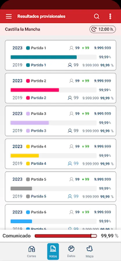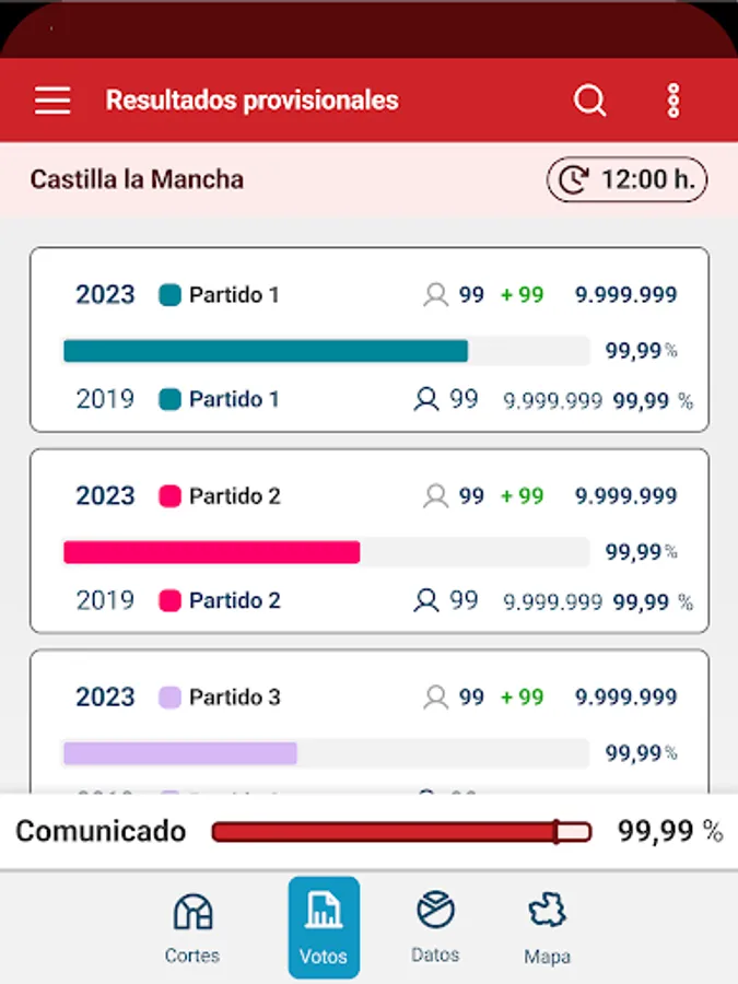 "28M Elections to the Electoral Board of Castilla-La Mancha" is the official and free application that the Government of the Community of Castilla-La Mancha makes available to citizens to consult the provisional results of the elections to the General Assembly of the May 28, 2023. It allows you to consult in real time the provisional results obtained by all the candidacies by geographical area (Community and Municipalities).