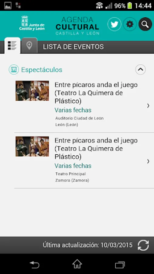 From your mobile you can locate the nearest to where you are, write them on your calendar, share them with your friends, save your favorite searches and more cultural events.
