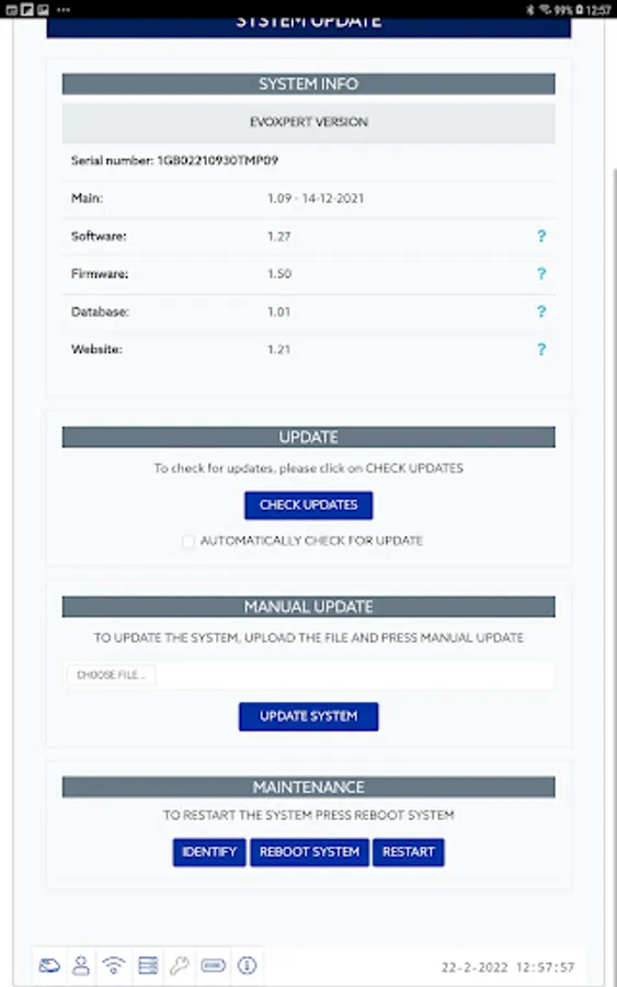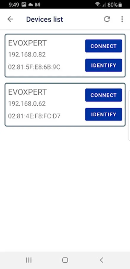 In the same APP, after being pressed Connect, you will get com with EvoXpert device, loading main webpage (user loggin).