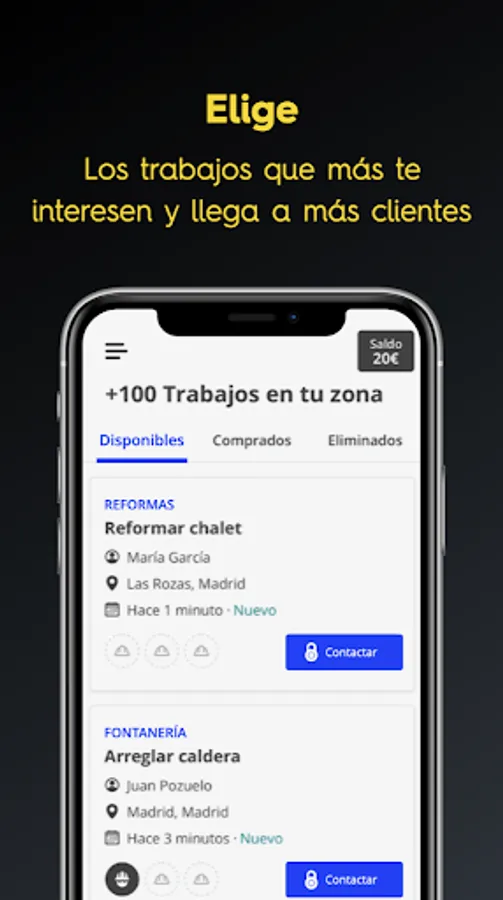 It is very simple! Register in our application and tell us what kind of job offers you would like to receive on your mobile phone (offers for handymen, removals, electrician, painter, locksmith, gardener, plumber, pool maintenance, air conditioning or air conditioning technicians).
