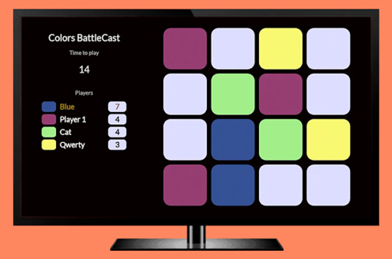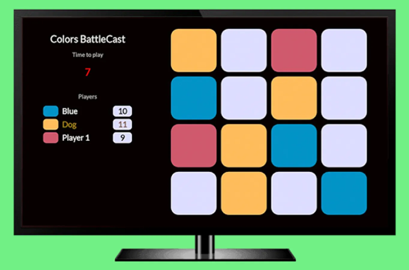 Colors BattleCast is a strategy game against the clock to get more points than other players putting your color on the board of your TV.