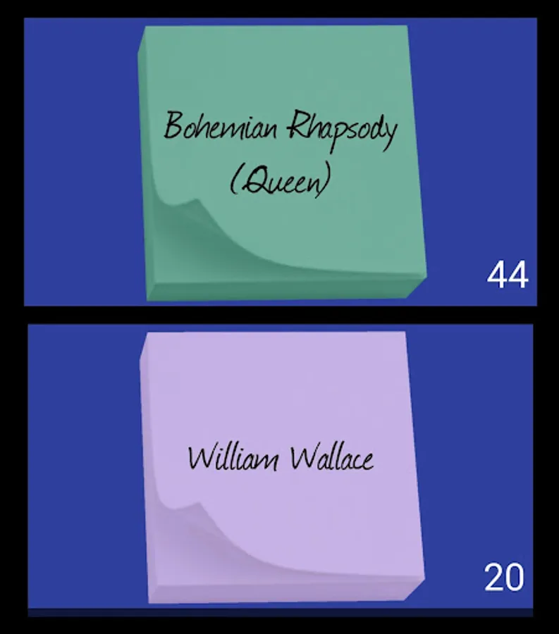 Try to guess all the words you can that will appear in the post-it with the clues that give you the others before time runs out.