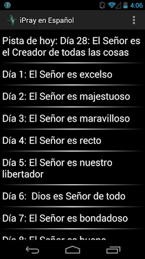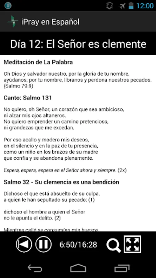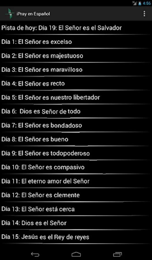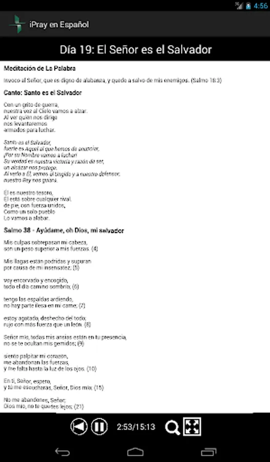 It may be that one day you want to pray to a specific topic. The list of topics by 31 at the end of this document. You can move to the day you prefer selecting from the player you're using to listen iPray.