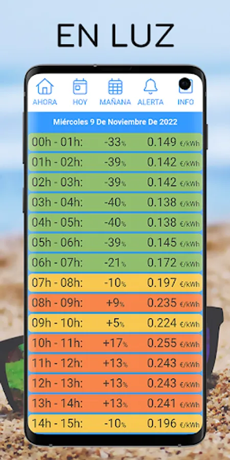 ✔ The app shows you the price of electricity EVERY HOUR TODAY AND TOMORROW.
