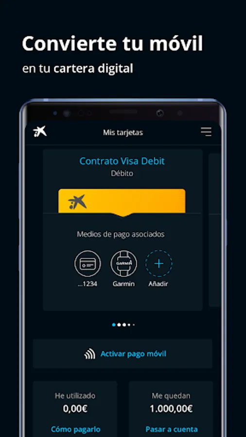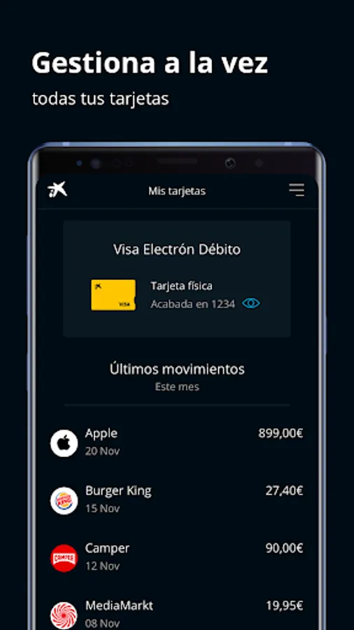 You will be able to manage all your CaixaBank cards easily and quickly. Check in real time all the operations carried out with the cards that you have added to your virtual wallet.