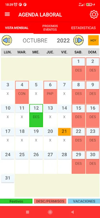 Organize your day to day with your agenda and you will have controlled breaks, sick leave, days worked...
