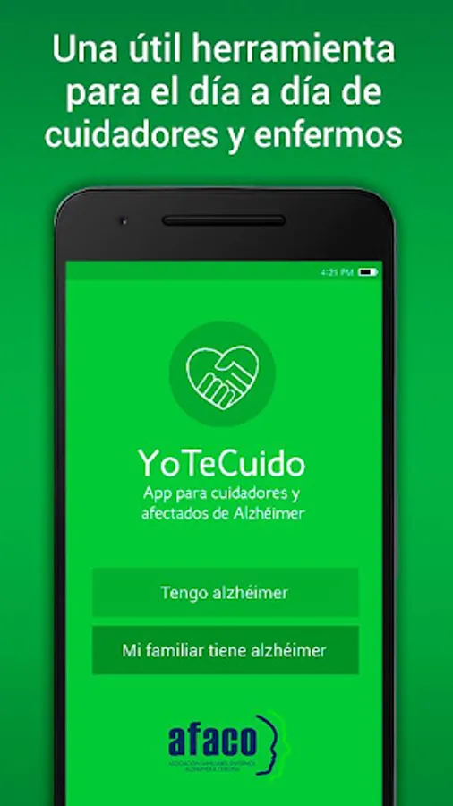 YoTeCuido is a very easy to use app designed to resolve the doubts and questions that many caregivers face and Alzheimer affected in their daily lives.
