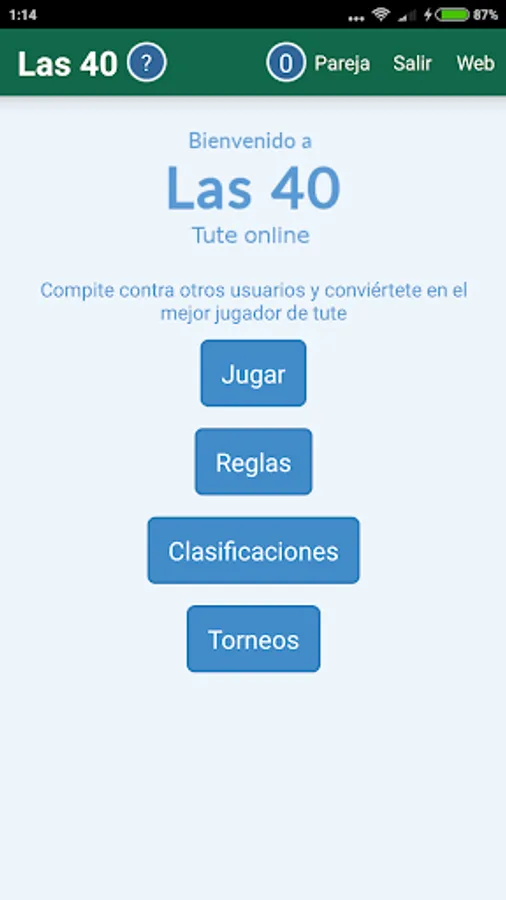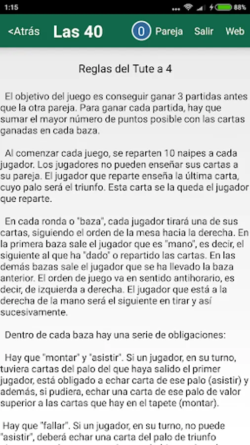Tute is a web-based application that allows playing http://tute.las40.es tute couples online against other users. The games are played with 3 points after each game and an update of the ranking of couples depending on the result.