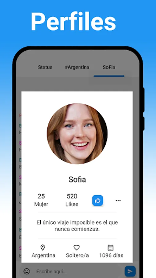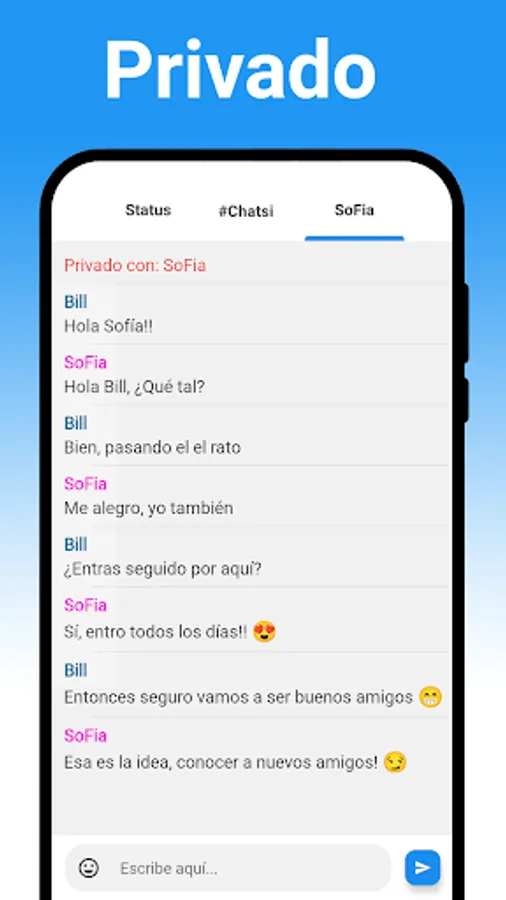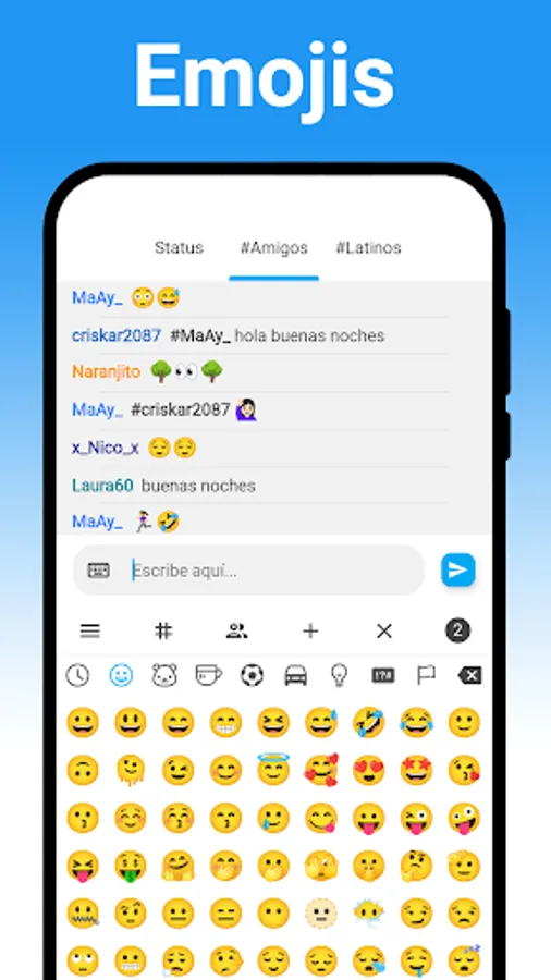 Thousands of people from different Latin countries connect to our free chat application to meet people, make new friends, find a partner or just for fun. We provide features such as private or chat room chats, anonymous login or optional account registration for the creation of profiles, modern and lightweight design developed Material Design with a dark theme included, dozens of emojis to bring your chats to life and much more .