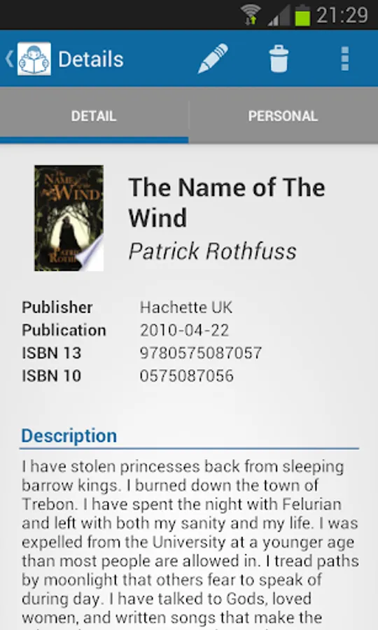 Personal Library is a book management application that helps you organize and catalog your book collection.