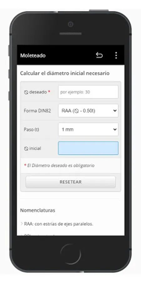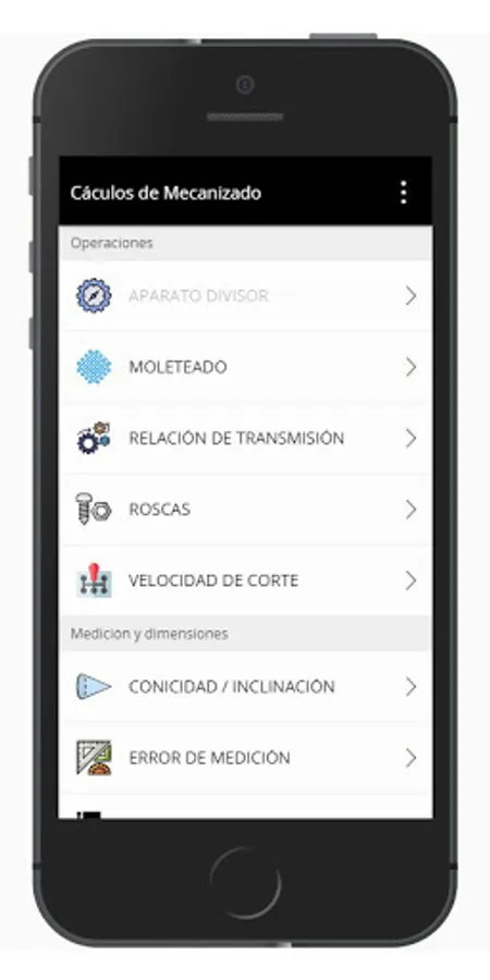 Android application with a complete collection of the calculations learned and used in the FP Machining by chip removal.