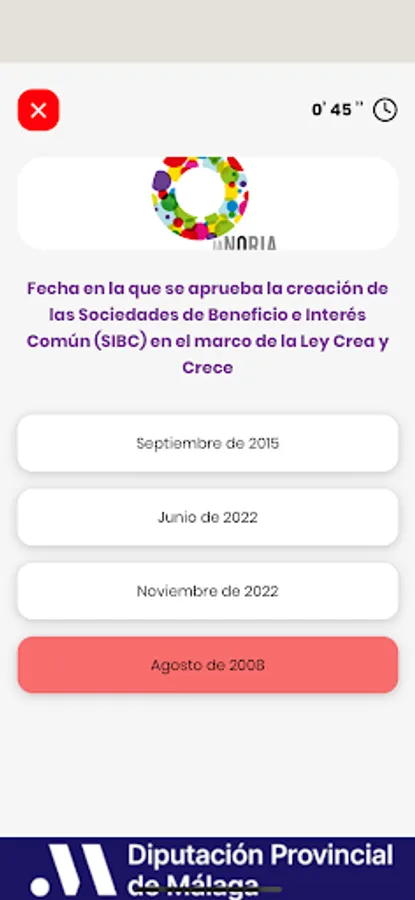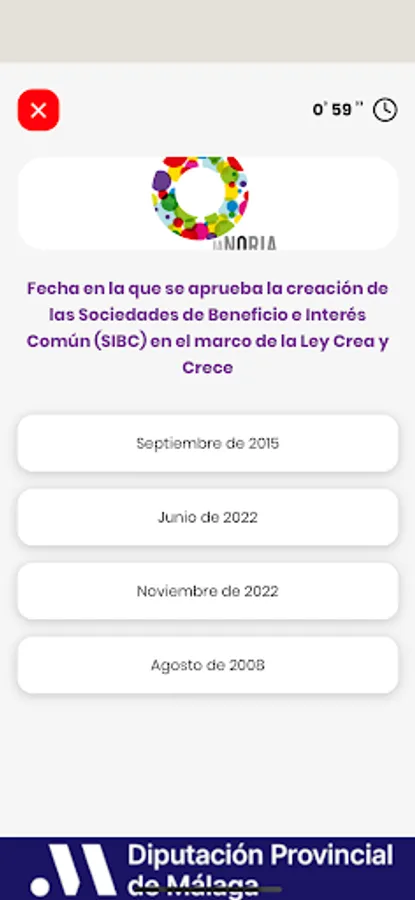 The themes of the questions already developed deal with La Noria, social entrepreneurship, the municipalities of the province of Malaga and social innovation.
