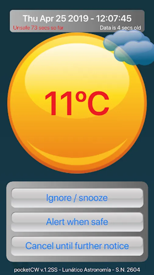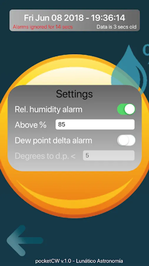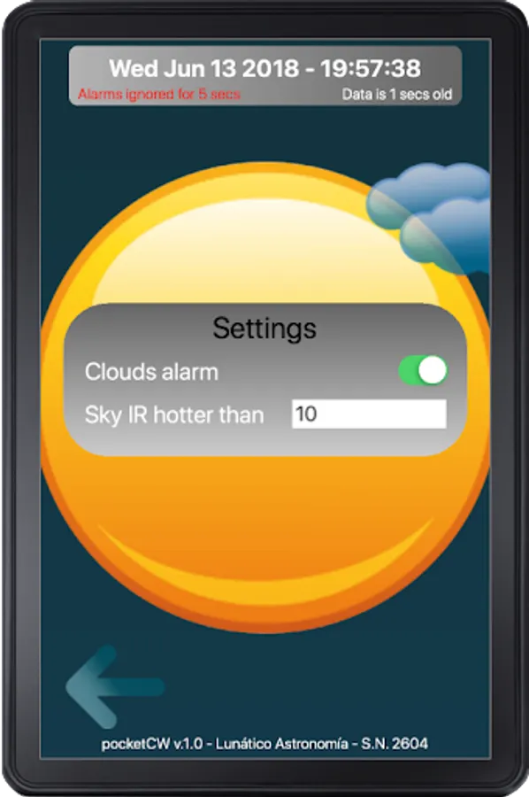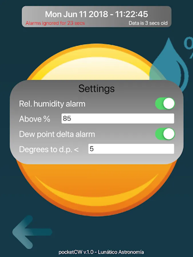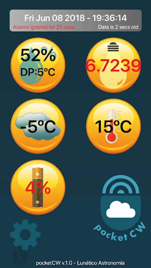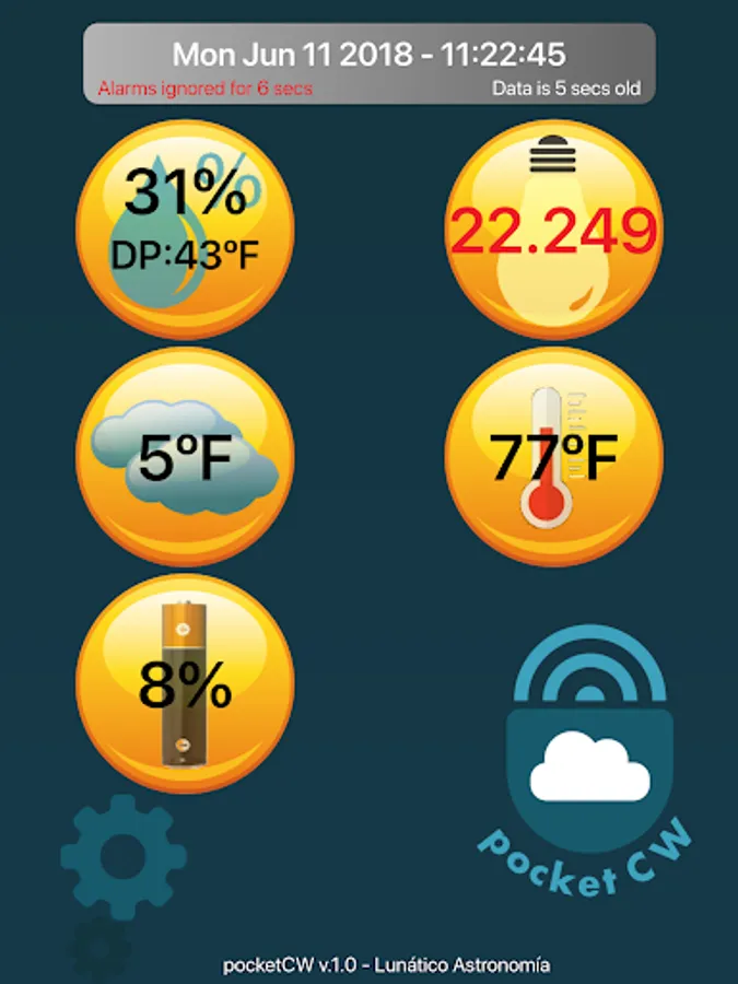 Program alarms on cloud presence, light, temperature, humidity, dew point, battery level...