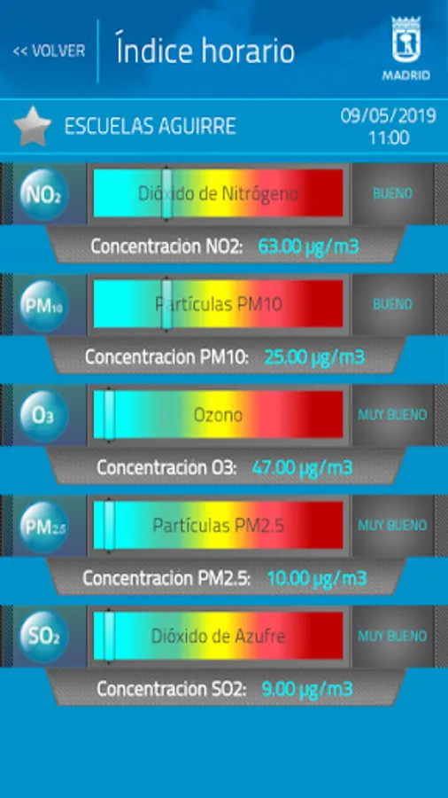 This tool, hour by hour, is updated with data provided by the monitoring system of air quality of the City of Madrid.