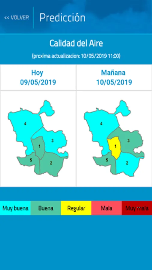 Madrid City Council offers an application that allows the user to know in real time the status of air quality in the city of Madrid.