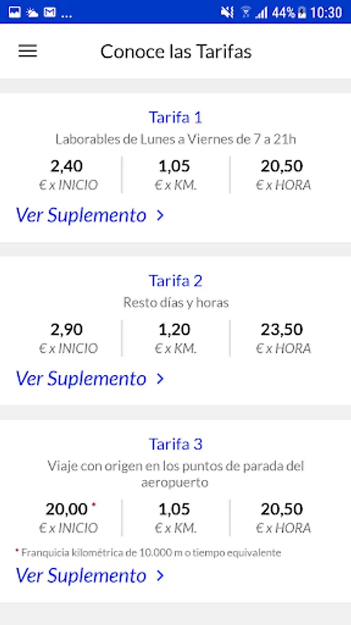 urban Rates: Meet rates and supplements Taxi Madrid.