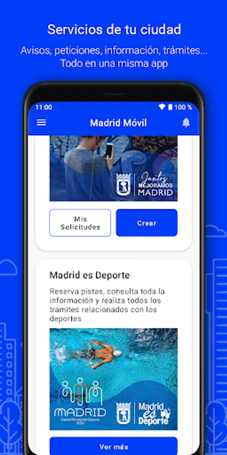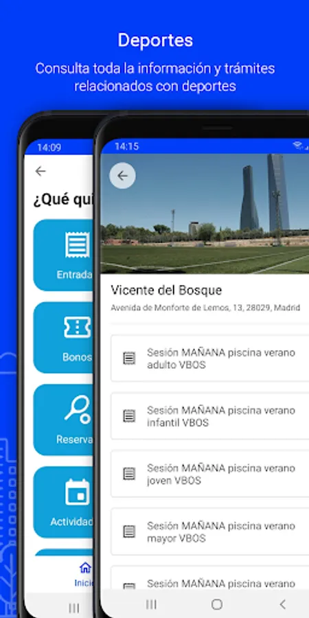 MADRID IS SPORTS: Buy tickets for swimming pools, reserve sports spaces, book sessions in open classes... all this and much more, within reach of a click. Enjoy sports in your city with Madrid Móvil.