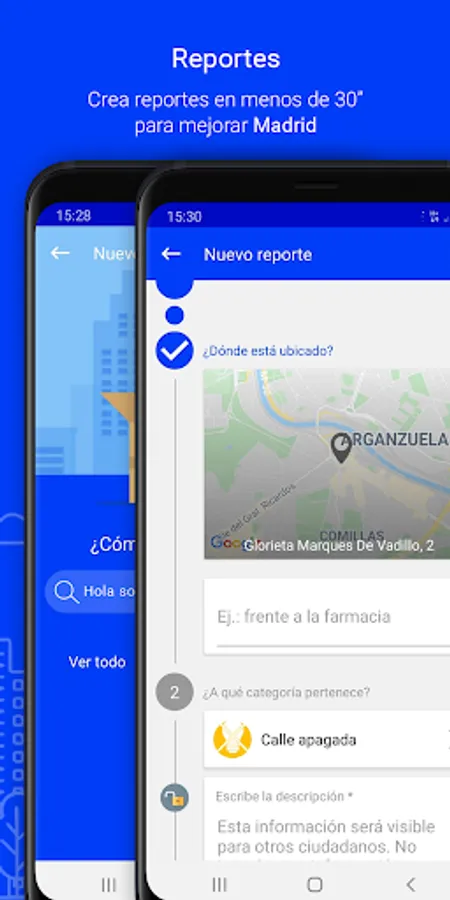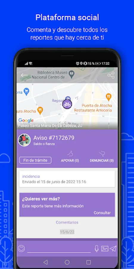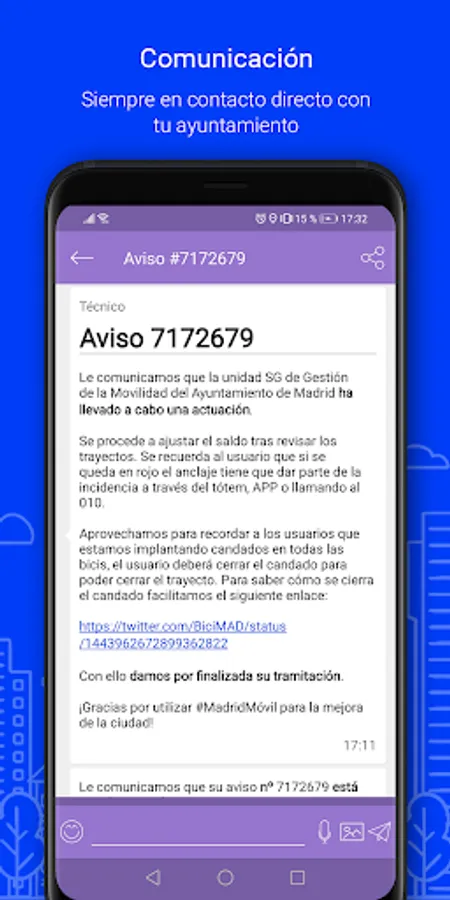 NOTICES: It sends in an agile and fast way, from wherever you are, notices and incidents related to cleaning and waste, collection of furniture or clothes, street furniture, lighting and other causes.