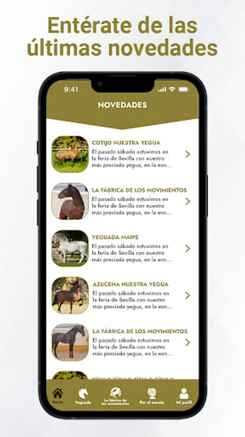 Yeguada Maipe is the factory of livestock movements established in 1978 where you can find the highest quality Purebred Spanish Horses on the current scene and with a quality that makes them stand out from the rest: wide and high movements, preserving the breed that has given us so many doors. open in the world. If you are passionate about the PRE, don't hesitate to download this app and its constant updates so you don't miss any news.