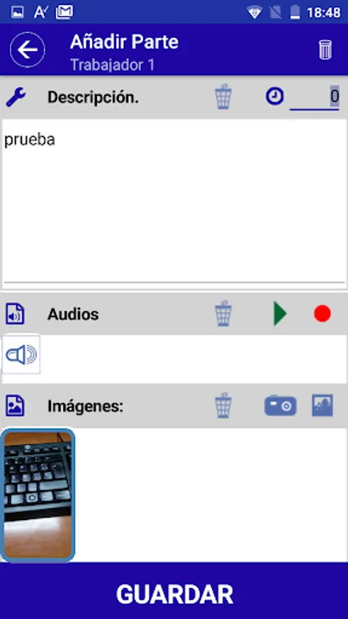 Simple app with which you can manage the work parts of the workers, and send them to the server, for a centralized processing of these can attach images, audios ...