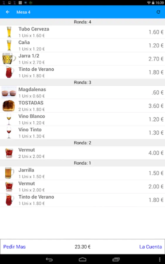 Scan your QR code Display the items in your bar / restaurant, and asks what you want from your letter, the waiter will come to traértelo, ask as many services as you need, once you finish you can ask your waiter account.