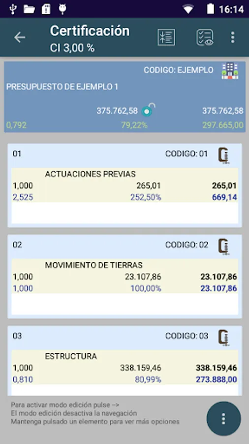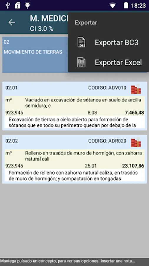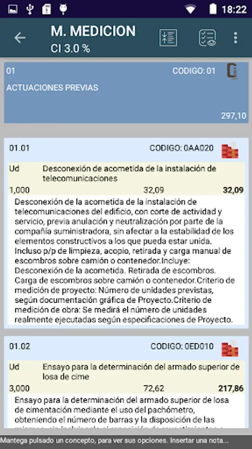 Its main virtue is in the display chapters, headings, measurements and decomposed, but also allows editing of items and measurement lines, and budgeting from scratch.