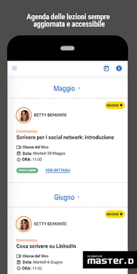 The MasterD Virtual Campus is the basis on which the success of the Open Training is based, based on a flexible and innovative methodology. Through the Virtual Campus, called LearNNity, MasterD students receive all notifications and updates of their study plan, both programs and relevant information on their training.