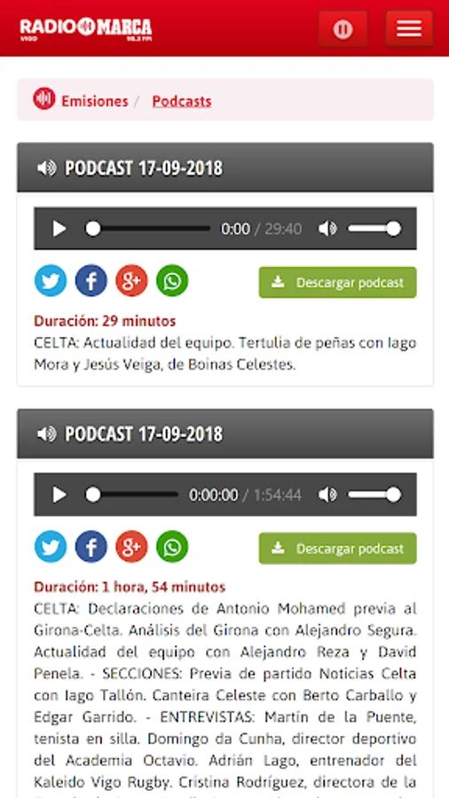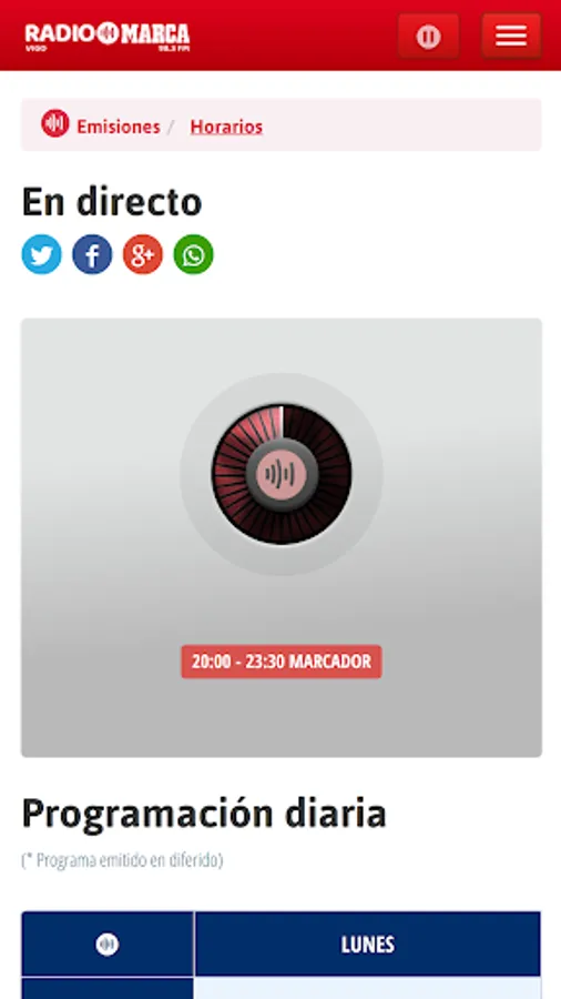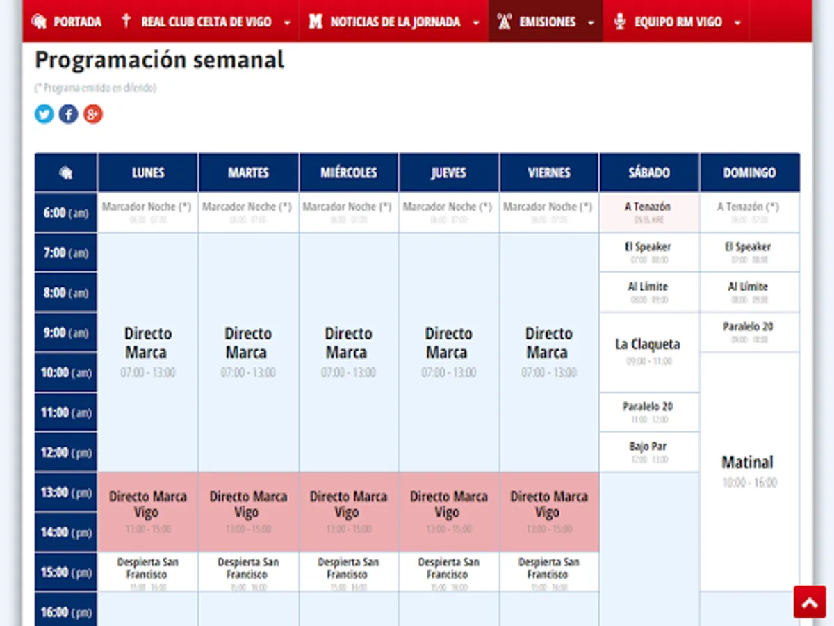 - Grill with the programming and weekly schedules of Radio Marca Vigo.