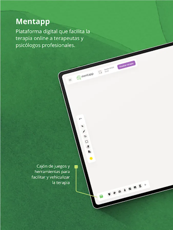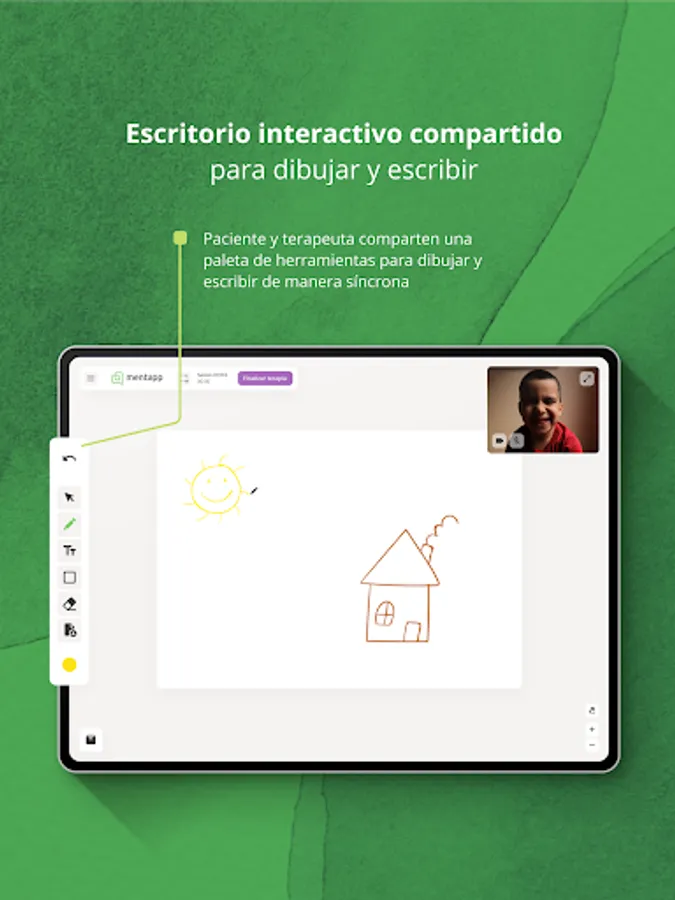 Mentapp adapts the projective tools used in face-to-face sessions to the online format, within a video call environment. In this way, you will be able to use all those techniques that you have been learning as a therapist throughout your training and experience, making your online intervention easier.