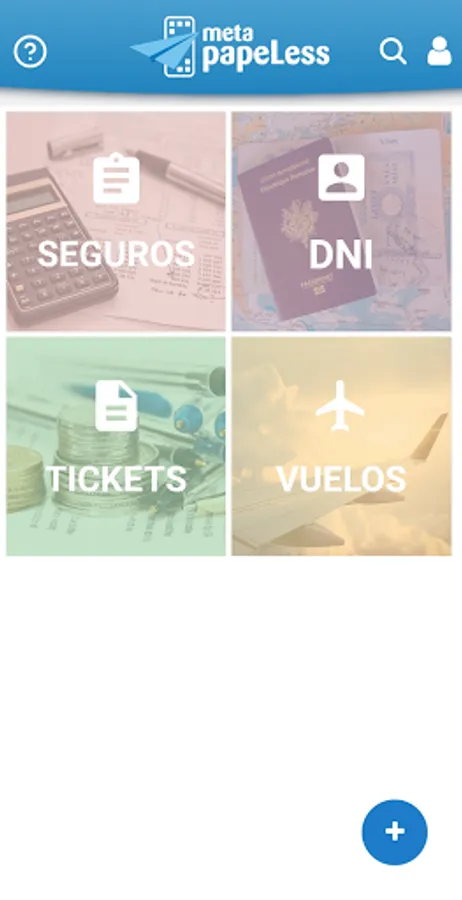 MetaPapeless is an intuitive, safe and easy-to-use application that will allow you to have all your documents on your mobile so that you do not lose anything, with the ease of having all your cards and IDs at hand, and avoiding all the inconveniences that lead to loss or deterioration of tickets, invoices, guarantees ...
