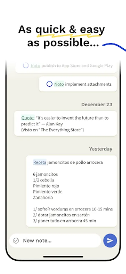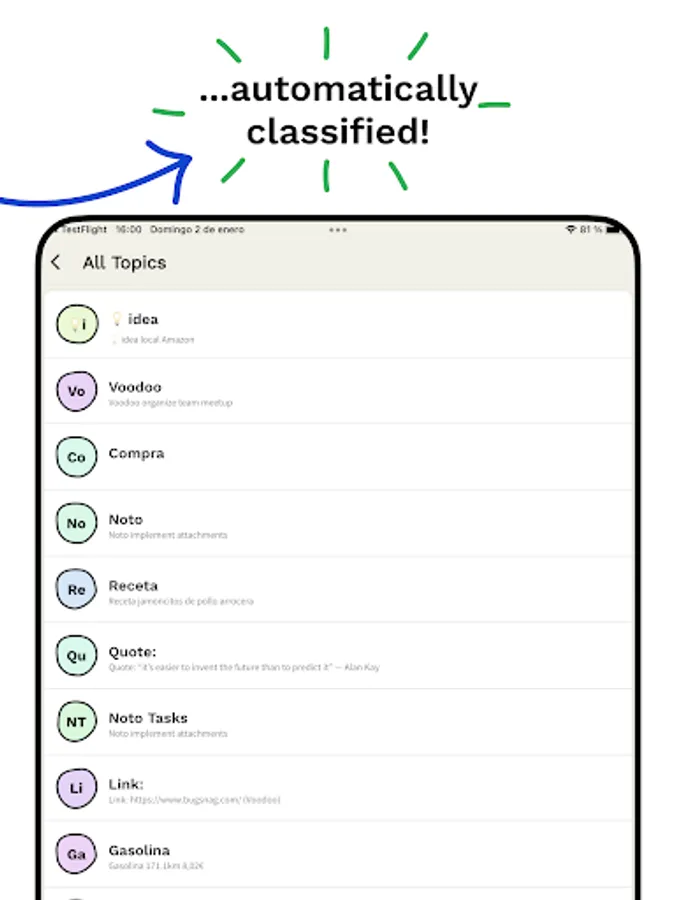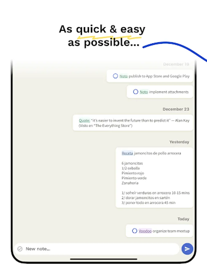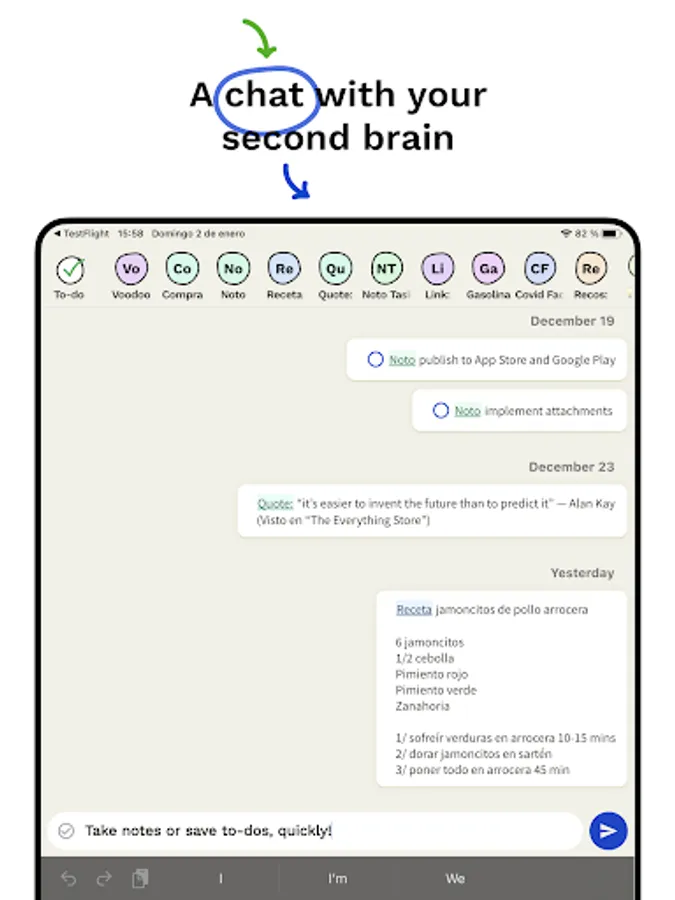 Productivity apps shouldn’t make your life more complicated. Noto simplifies your life by becoming a smart extension of your brain. Give it time and it will build a smart database of all your thoughts, reminders and to-dos.