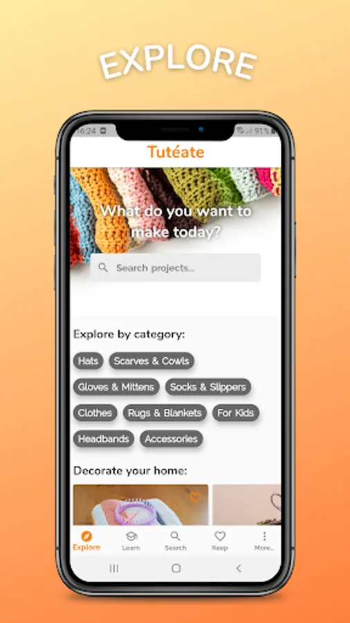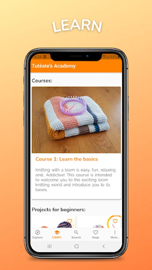 Tutéate App gives you access to a growing universe of detailed loom knitting video tutorials. You can learn from the lessons available in its academy section or directly pick any loom knitting project and learn on the go.