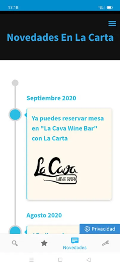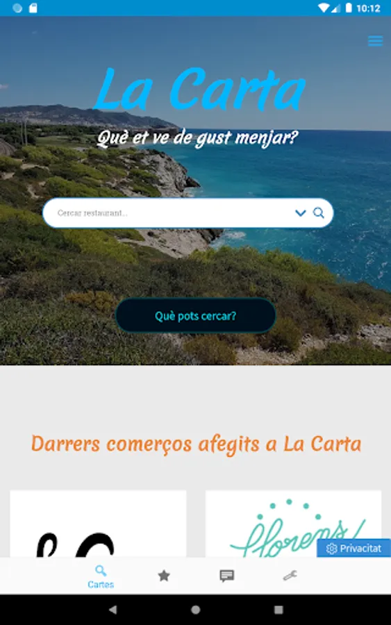With the La Carta app you will be able to access the content of the menus of bars and restaurants in Vilanova i la Geltrú, without having to read any QR code.