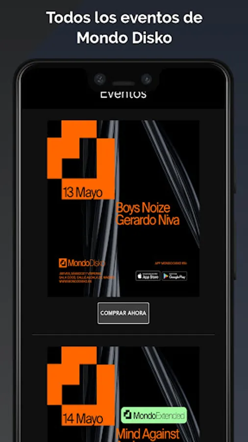 The Mondo Disko application allows you to see all the events on our schedule, buy tickets with just a touch and stay up to date with the latest news.