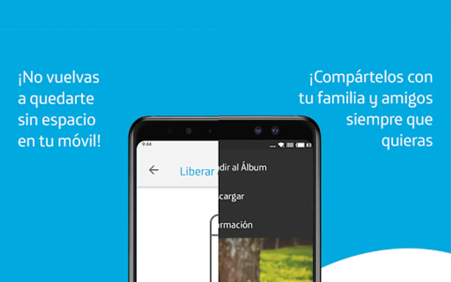 Share your photos and videos with your friends via email, whatsapp and on social networks. Create backup copies of your photos, videos and documents and you will be able to free up space on your mobile so that it is always in good shape. You can also keep in Movistar Cloud all your SMS, the list of calls and the list of apps you have installed so you don't lose them.