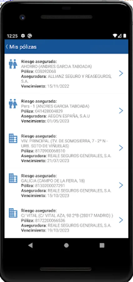- Consultation of the detail of the insurance policies.