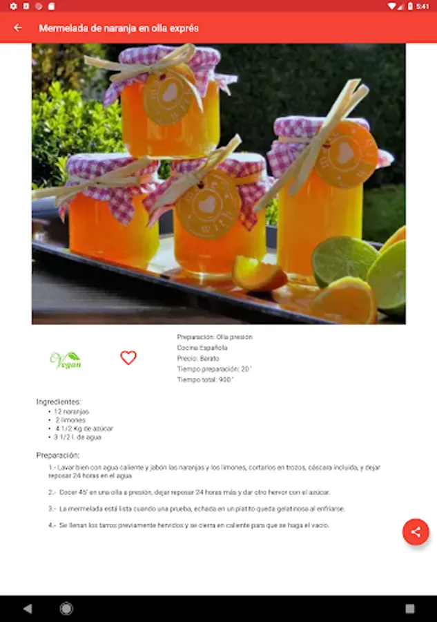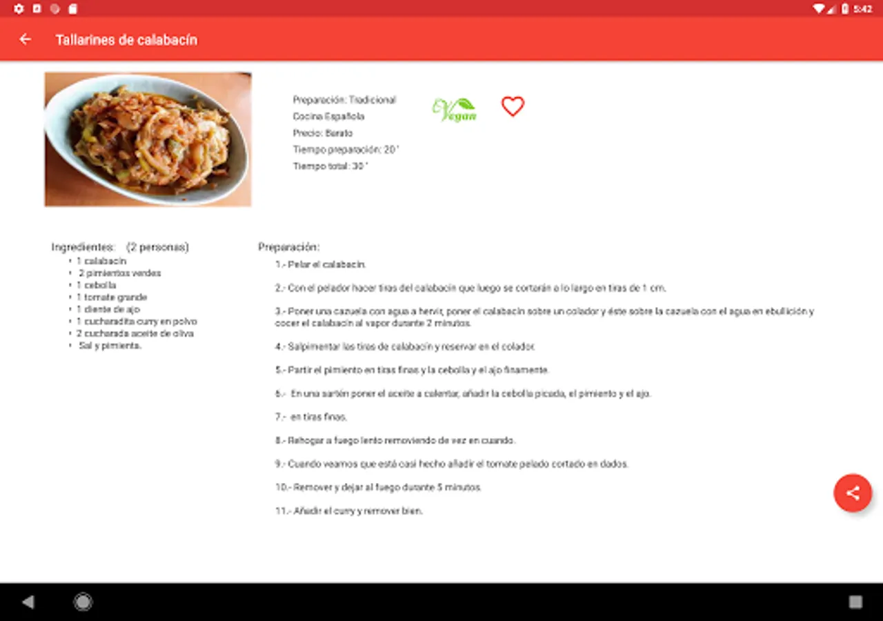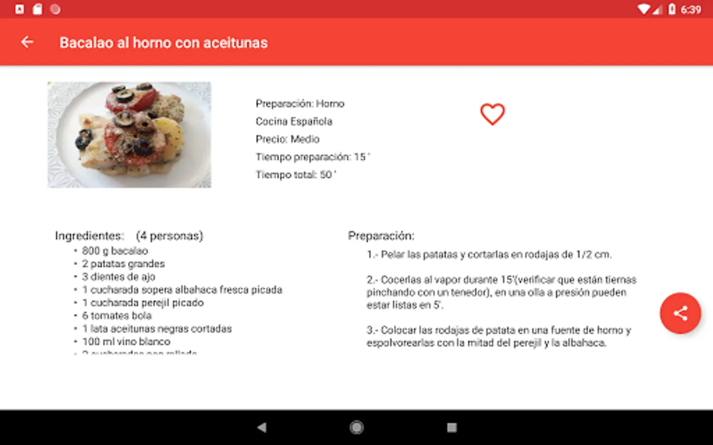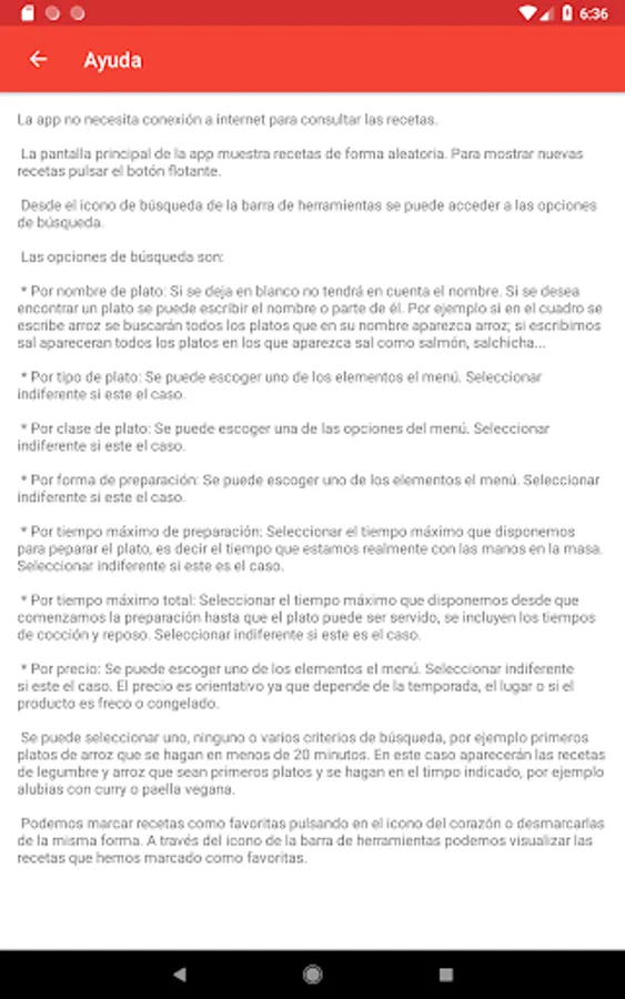 The app is fully functional once downloaded and does not need Internet connection or to search for recipes or for viewing them.