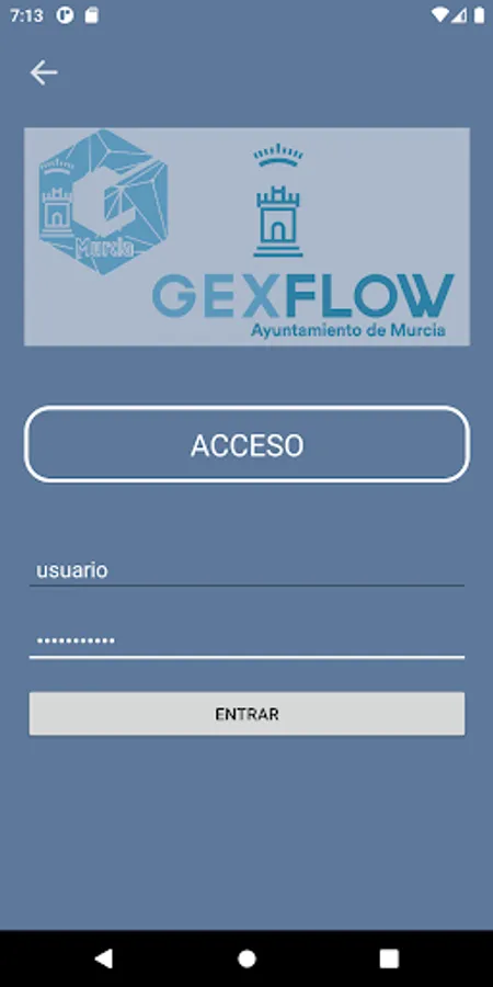 This app is not only for internal use by officials of the Murcia City Council, but can be used by any official belonging to other municipalities in Spain who use the Gexflow application (made by the Teralco company) to manage their files. In this case, they must change the access point established by default for their personalized one.