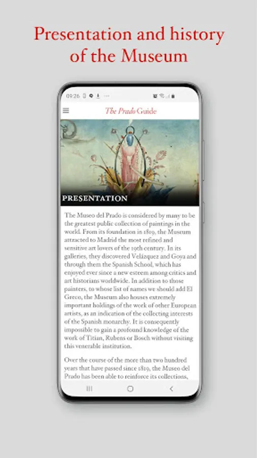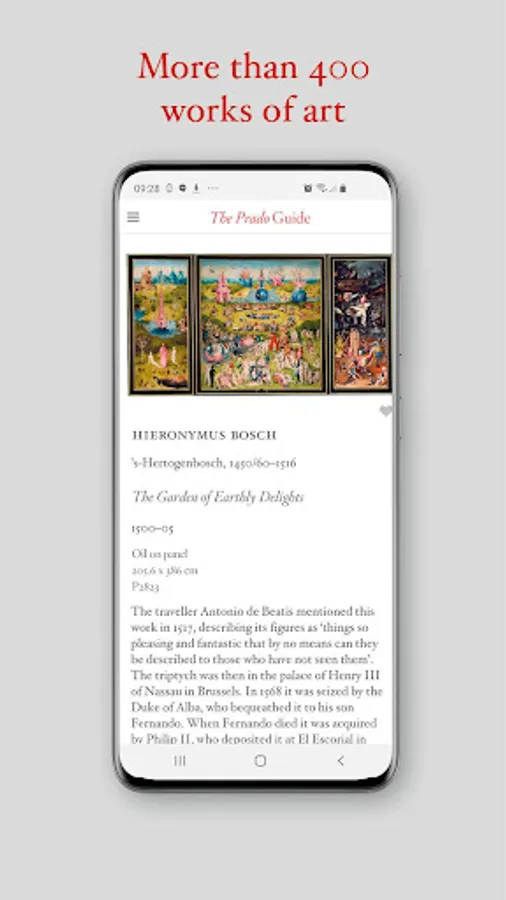 The App of the official Prado Guide is the best way to enjoy the Museum from anywhere you wish. It is intended for visitors and for anyone interested in discovering the collection of one of the world’s most important art galleries.