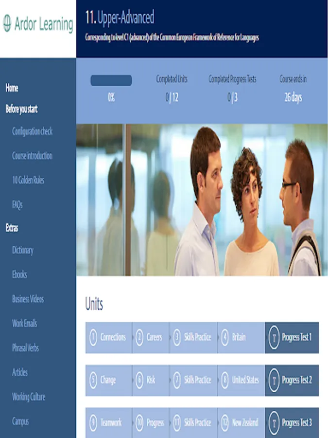My Ardor English is a unique e-learning course created by Ardor Learning. It is composed of an extensive variety of multimedia content of the highest quality, designed to facilitate the user learning English.