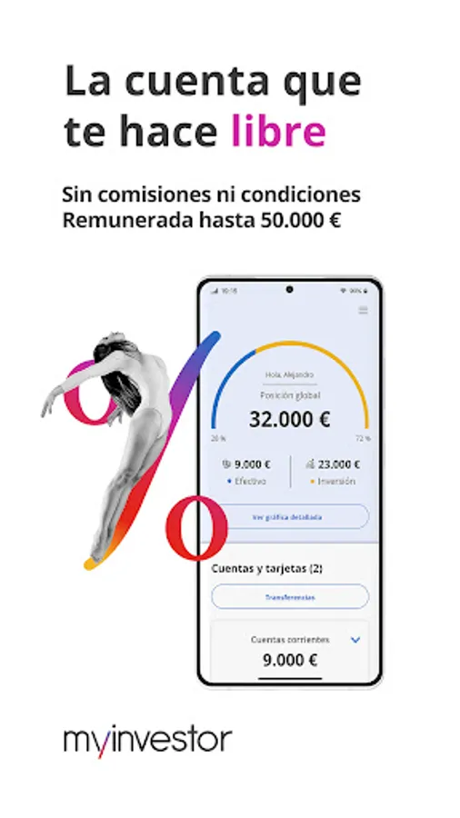 Account remunerated at 2% TIN/TAE up to €50,000 during the first year. After the first 12 months, you can maintain this remuneration if you invest a minimum of €300 per month in indexed portfolios (roboadvisor), investment funds or pension plans from the MyInvestor range. If this condition is not met, after the first year the remuneration is 0.30% TIN/TAE on a maximum of €50,000.