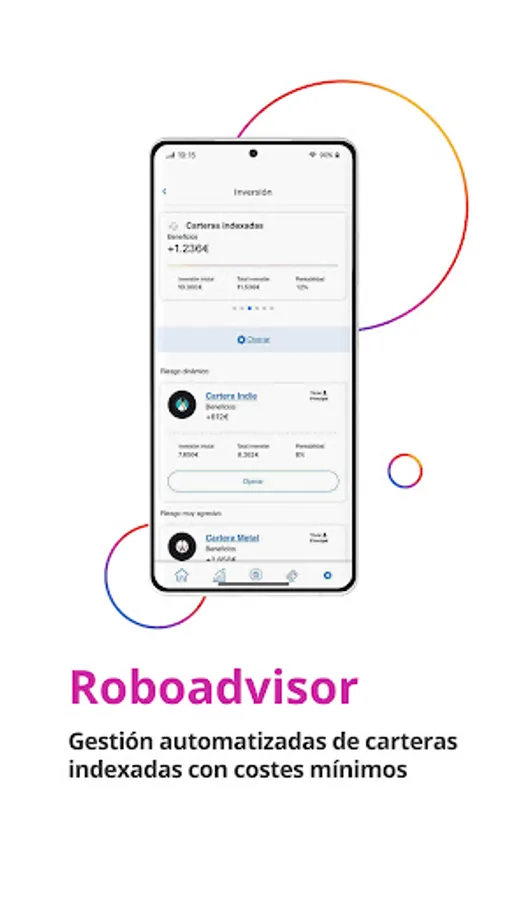 • Roboadvisor. Discretionary Management Indexed Portfolios, composed of index funds, designed by professionals. Five levels of risk. From 150 euros. Take a simple online test and we will assign you the portfolio that meets your needs. Systematic rebalancing. Minimum commissions of 0.30% per year (VAT included).