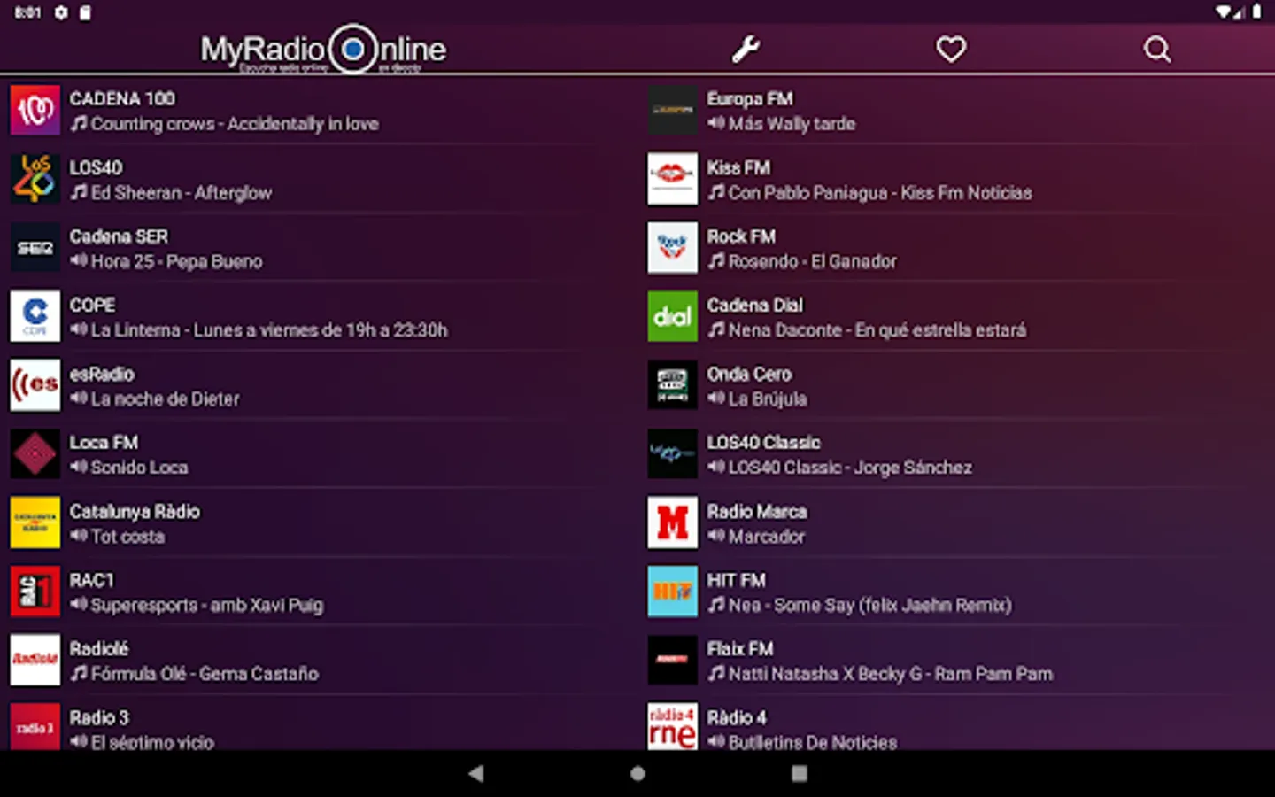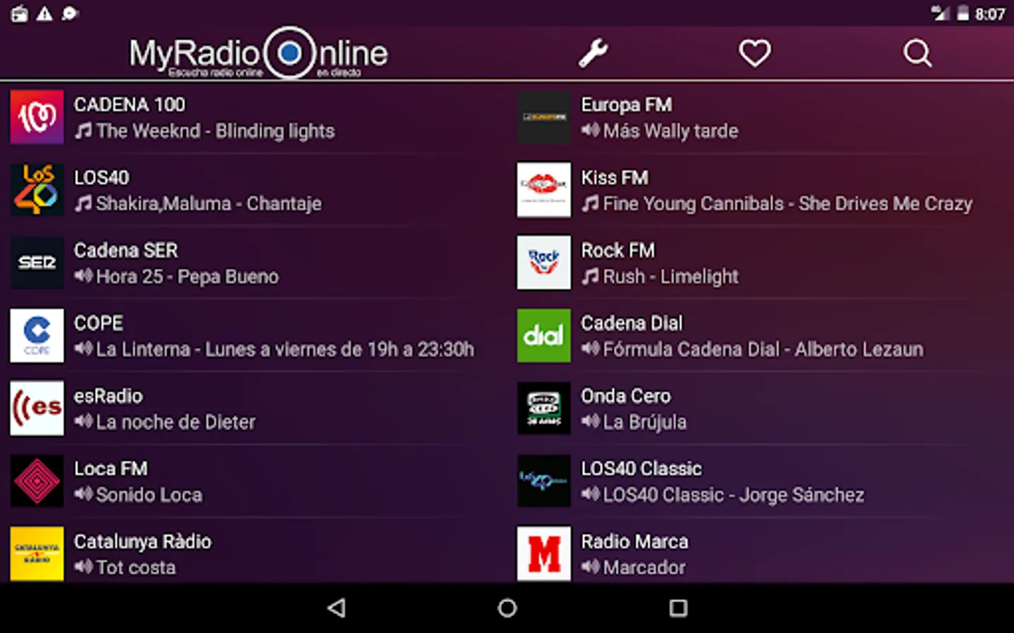 The Android application that is created for our page called myradioonline.es brings together the online radio stations in Spain and has similar functions to the web interface. Currently you can listen to more than 50 Spanish online radios.