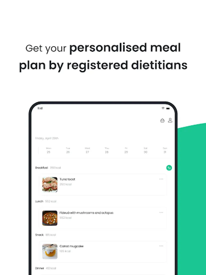 - Follow a meal plan personalised by nutritionists adapted to your preferences (omnivore, vegetarian, vegan and gluten-free option) and goals (lose fat, gain muscle or maintain it) by eating healthy.