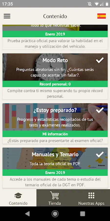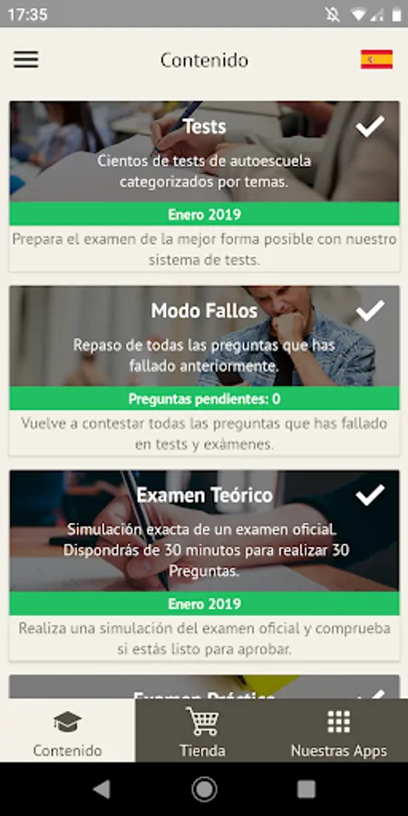 Hundreds of tests categorized by themes. Following the structure of the Spanish Constitution.