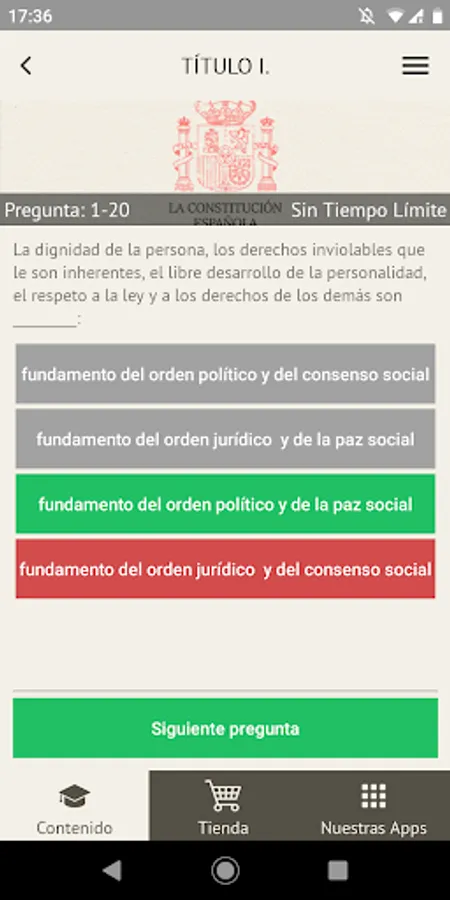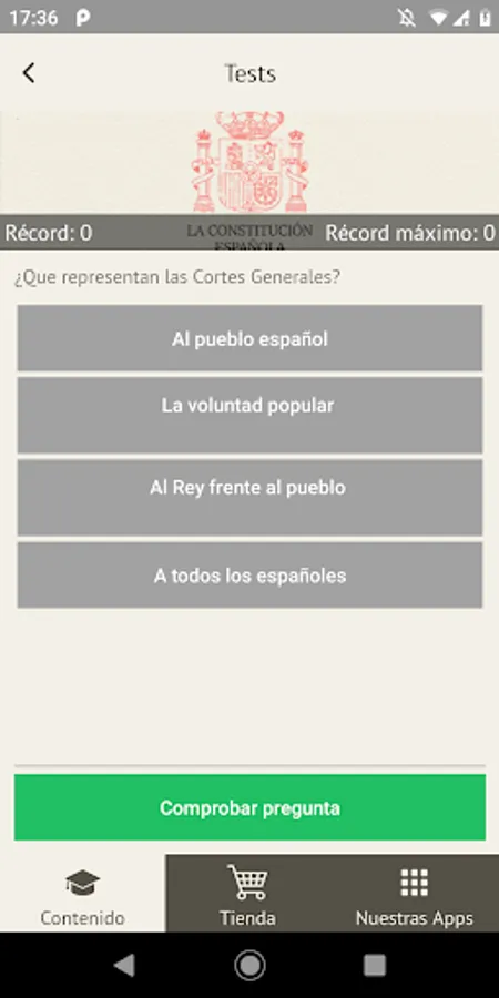 "The Spanish Constitution Premium" is an application composed of multiple tests and useful information to help improve knowledge about the Spanish Constitution.