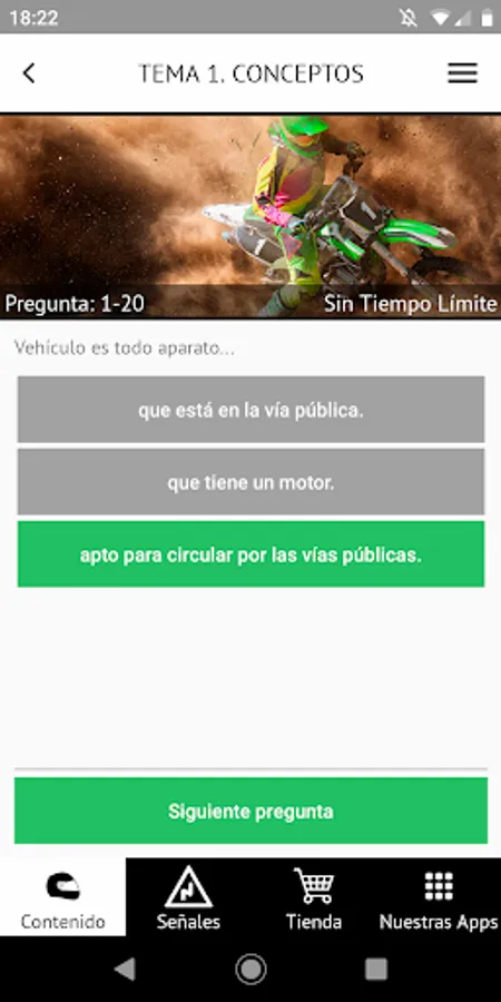 Exact simulation of an official exam of the DGT. You will have 20 minutes to complete 20 questions.