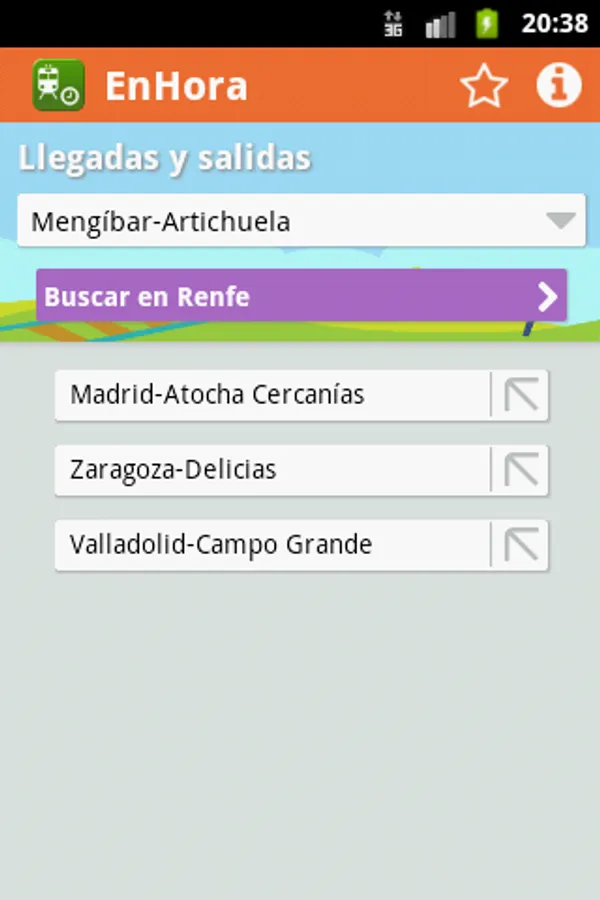 EnHora allows you to carry the arrival and departure panels of the main train stations in Spain on your mobile. Check Renfe's circulation information in real time and find out in seconds if the train you have to take is running on time, or if you will arrive at your destination late.