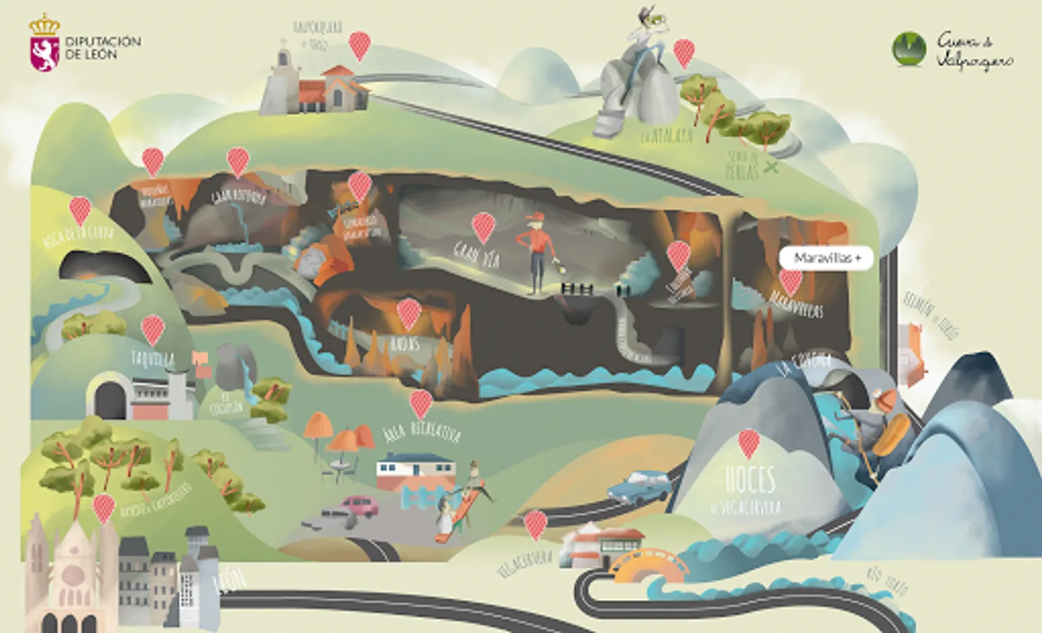 At 1,309 meters under the town of Valporquero de Torio, Leon the heart of the mountain, opens an immense mouth which, accompanied by a clear stream, we can discover hidden wonders and incredible underground.